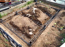 Выкапываем между захоронениями траншеи, между получившимся холмами ввариваем надёжный каркас в четыре арматурных кольца.