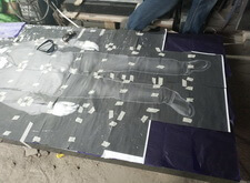 Далее начинается второй этап – переход к созданию элементов памятника. Первая подготовленная деталь – полукруглая арка. Трафарет на арку отпескоструили, сделали надпись сусальным серебром